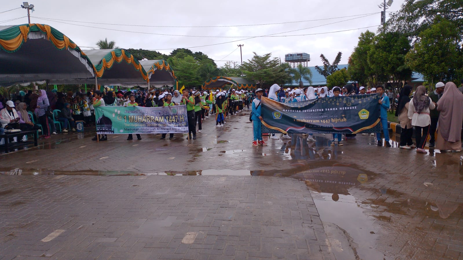 Merauke, 27 Juni 2025 — Dalam rangka menyambut 1 Muharram 1447 H, ribuan peserta memadati halaman Masjid Raya Merauke dalam kegiatan Pawai Damai yang berlangsung penuh semangat dan kebersamaan. Kegiatan ini menjadi momen istimewa yang mempererat ukhuwah antar umat dan lembaga pendidikan Islam di Kabupaten Merauke, Provinsi Papua Selatan.